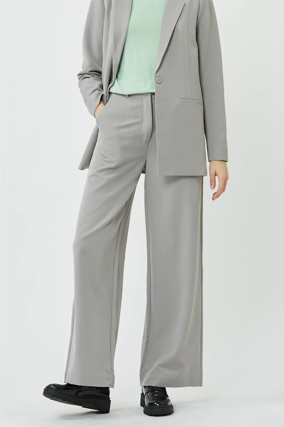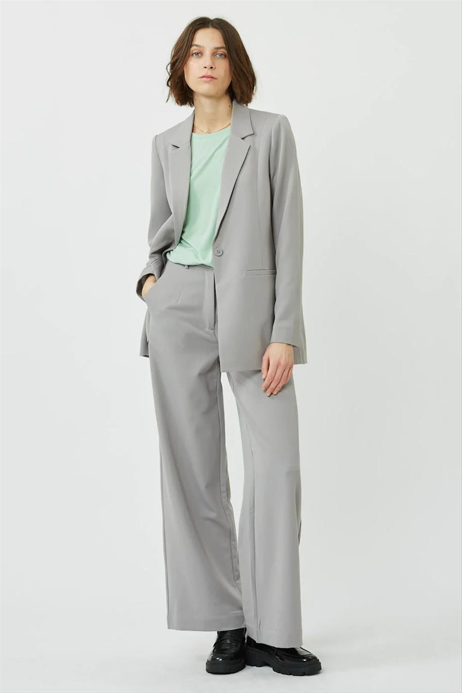 Lessa 2.0 is een uitlopende broek, gemaakt van een klassiek getailleerde stoffenmix van viscose en polyester met stretch. De broek is ontworpen met een normale taille, wijde pijpen, schuine zijzakken, paspelzakken aan de achterkant, riemlussen en een verborgen sluiting.
