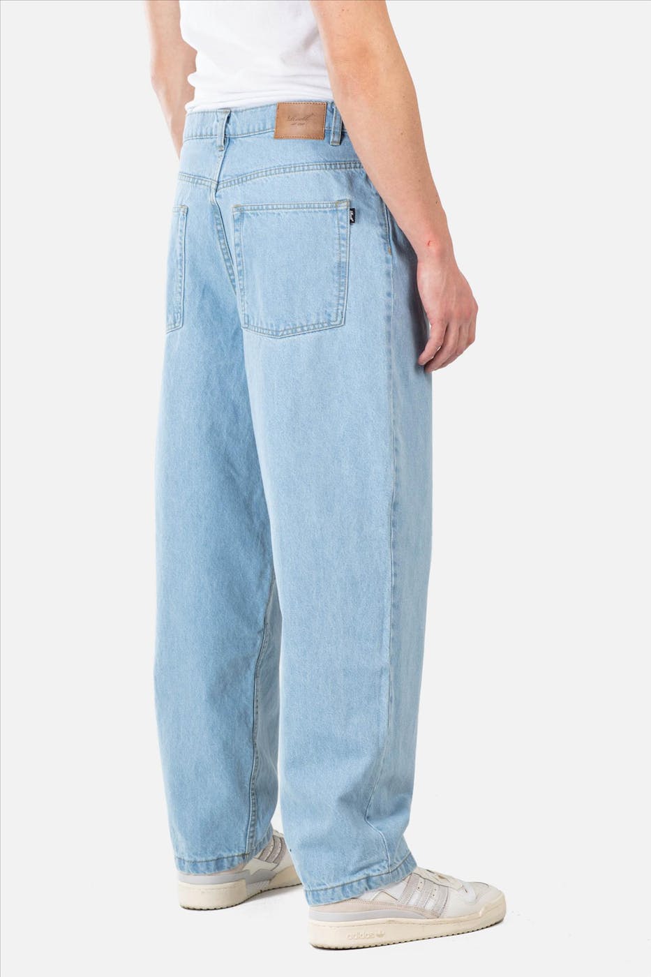 Deze bleke baggy jeans is ideaal voor de skater die graag veel bewegingsvrijheid heeft. De jeans heeft een rits- en knoopsluiting en loopt heel wijd uit. Extra stiksels en rivetten verstevigen de meer kwetsbare delen. Een embleem siert het kleine voorzakje en achteraan zit een patch van Reell. Broek wat laten zakken, en hop, de straat op!