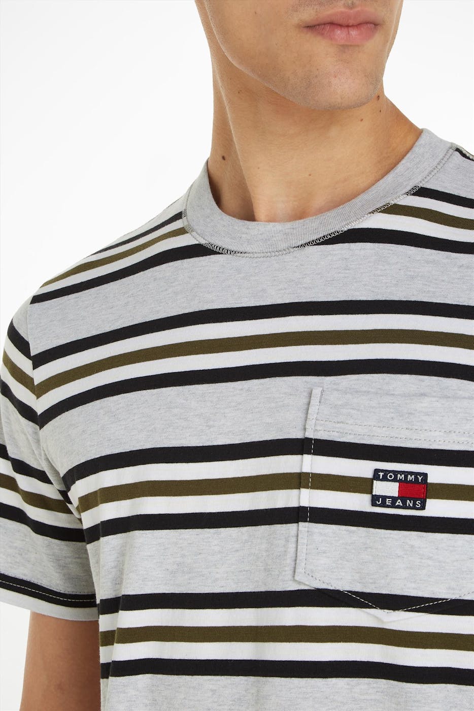 Tommy Jeans - Lichtgrijze Stripe T-shirt